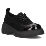 Skórzane półbuty na platformie DP6037/24 BK BE czarne